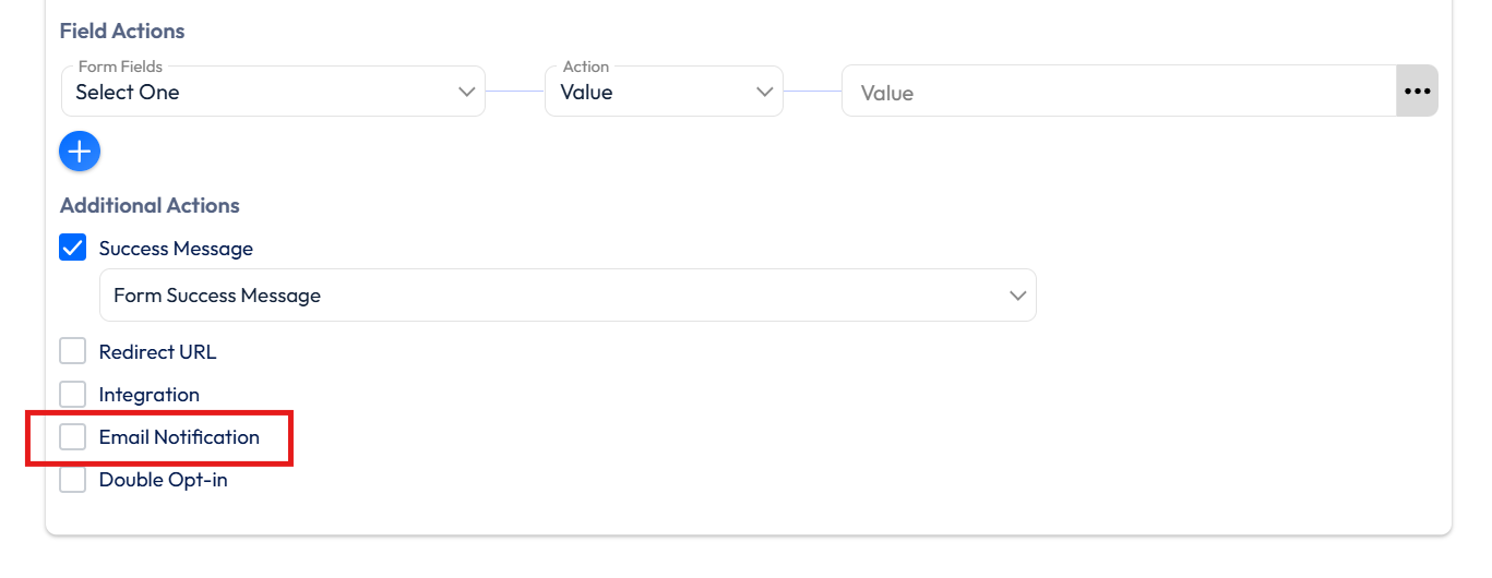 Jetzt haben Sie die Bedingungen für den Versand von E-Mail-Benachrichtigungen festgelegt. Klicken Sie auf "Erfolgsmeldung anzeigen" > Nach unten blättern unter Zusätzliche Aktionen, finden Sie "E-Mail-Benachrichtigungen"Wählen Sie es aus> Wählen Sie nun eine E-Mail-Vorlage.