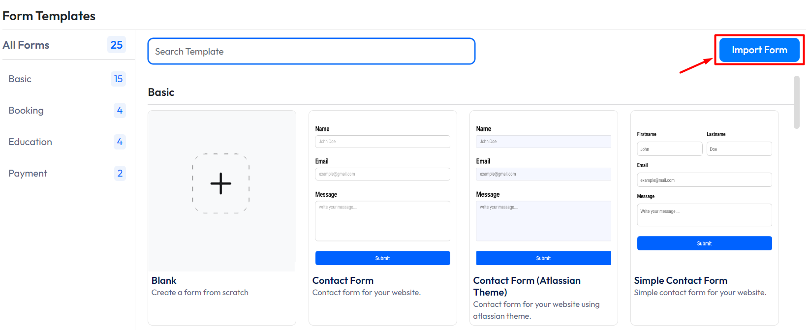 You can also import forms. Just click on “Import Form” to do it.