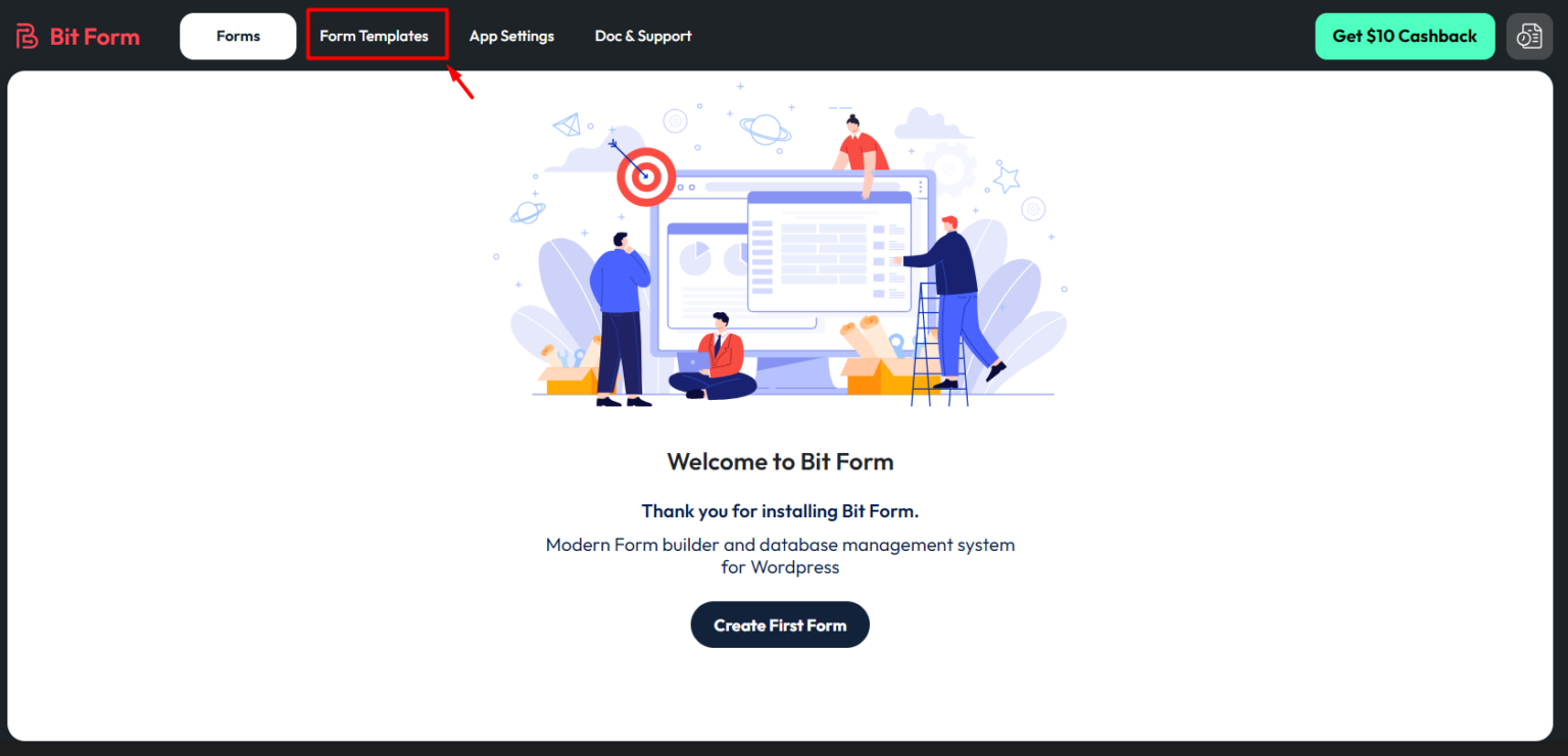 To select a template in Bit Form, first go to Bit Form, then click on “Form Templates.”