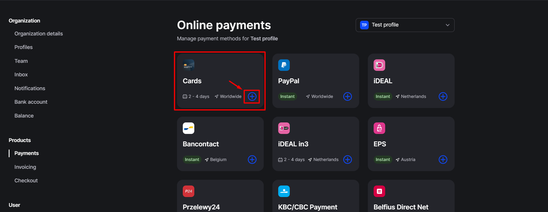 Payment Method: You can select a payment method, and add multiple options if desired. By default, the Credit Card option is selected.